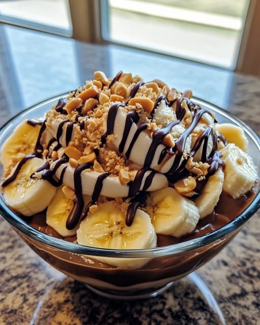 The combination of warm peanut butter and cold ice cream is a match made in dessert heaven. The peanut butter melts slightly into the ice cream, creating a luxurious texture and flavor, while the fresh bananas add a natural sweetness and the crushed peanuts bring that satisfying crunch.