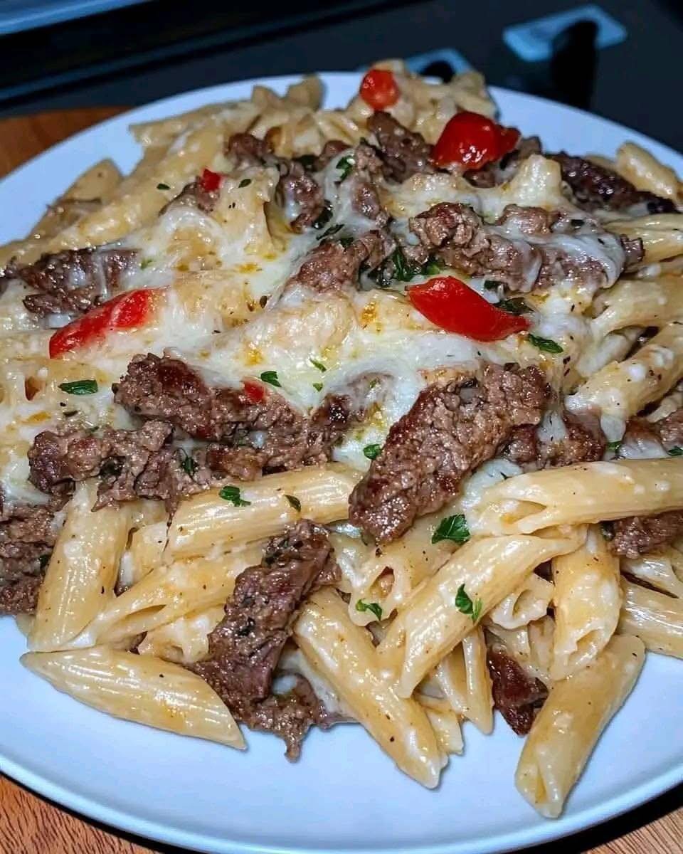 Philly Cheesesteak Pasta 🍝🧀