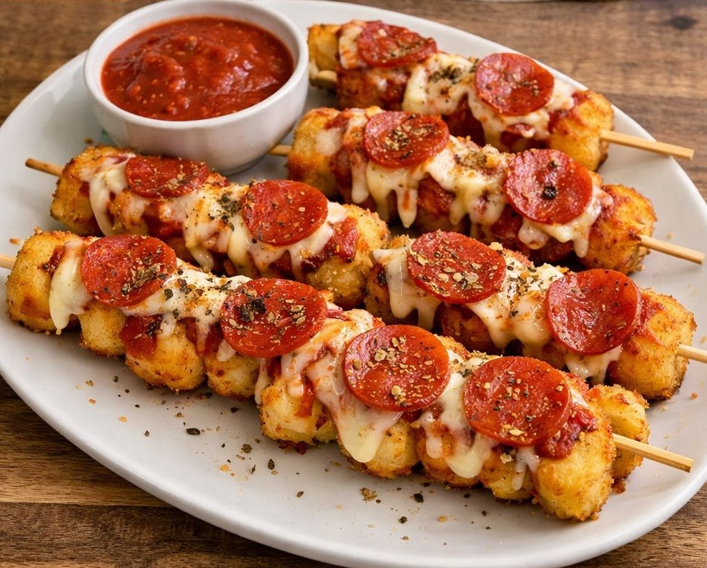 Pepperoni Pizza Tater Tot Skewers 🍕