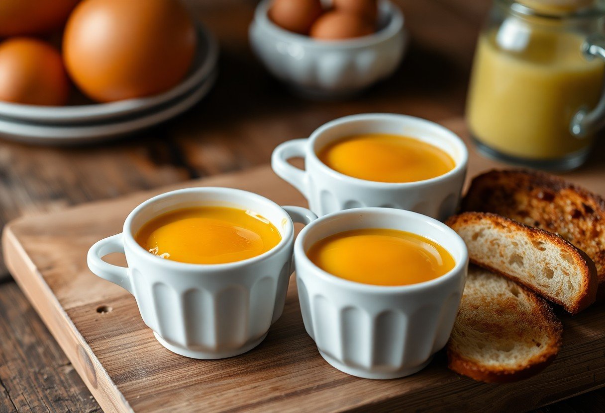 8. Serve the soft-boiled eggs in egg cups with the soldiers on the side for dipping.