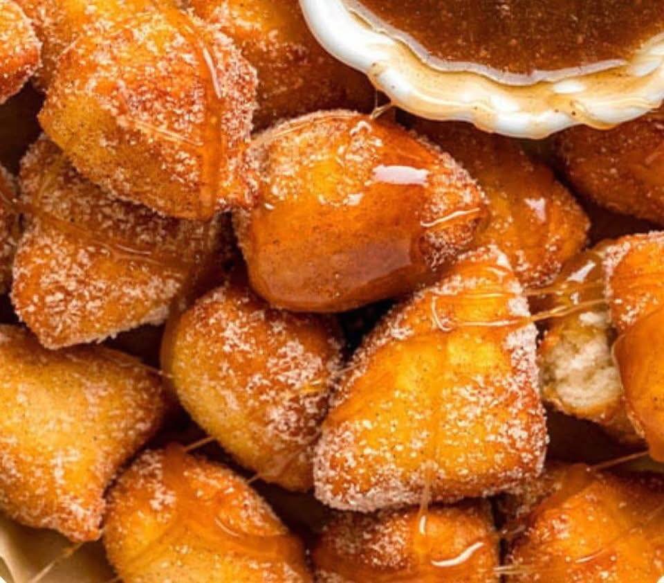 They start with biscuit dough (yes, shortcut magic!), fried until golden and puffed, then tossed in cinnamon sugar while they’re still warm. And the real star? That butter pecan sauce. It’s thick, sweet, rich, and full of toasted pecan flavor—basically, liquid gold.