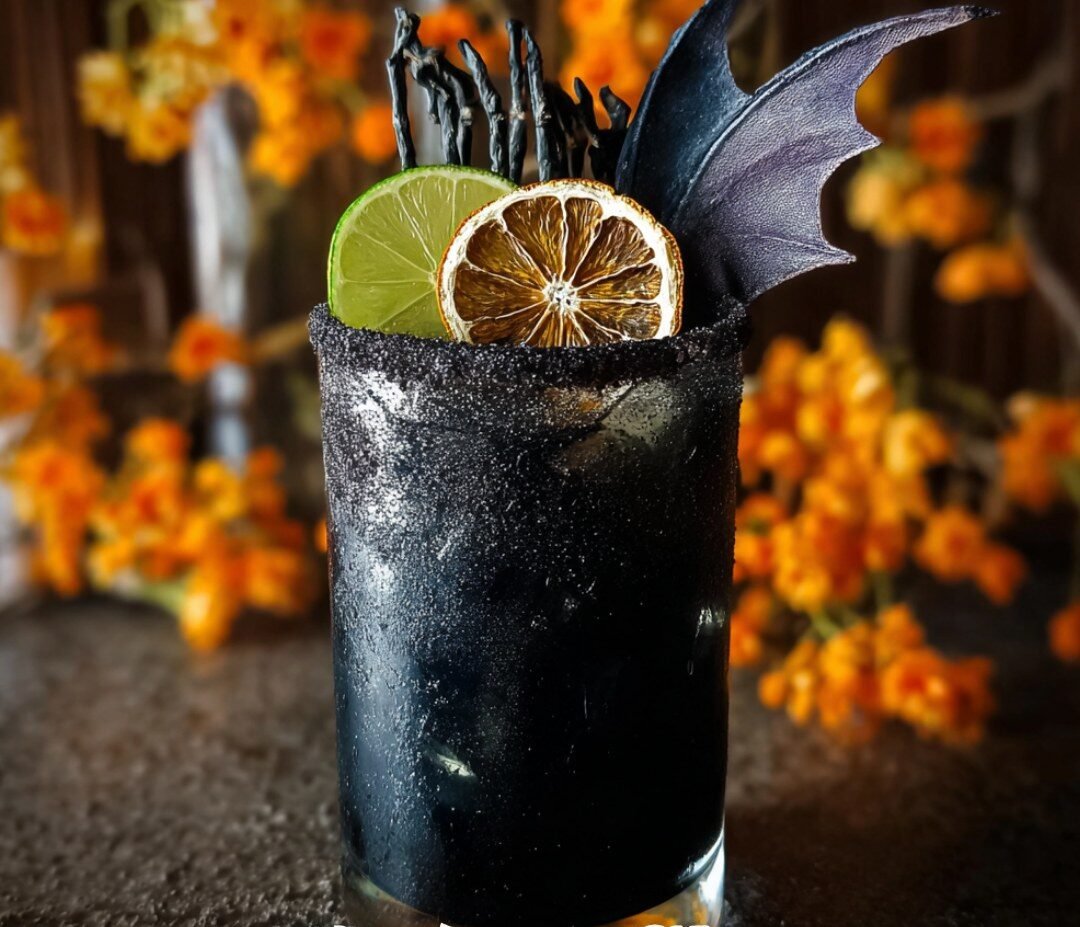 - Garnish: dried orange slice, spooky picks (bat, skeleton hand, etc.), or edible black/silver glitter