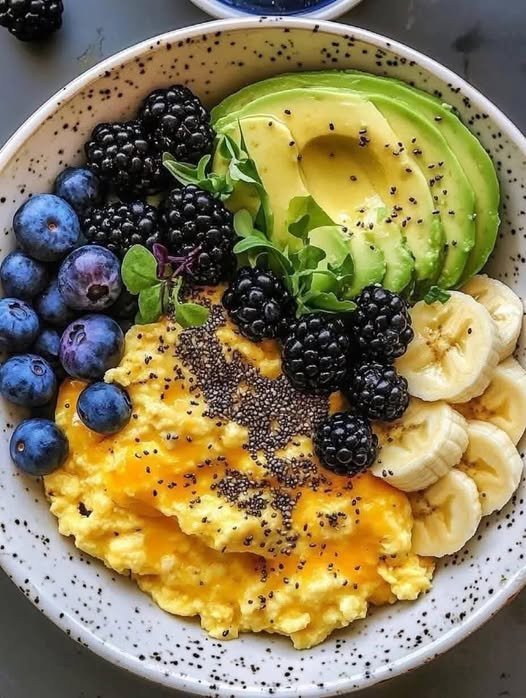 This Power Breakfast Bowl with Scrambled Eggs, Avocado & Berries is the perfect combo of vibrant, nourishing, and delicious. It fuels your morning with real ingredients and real color—no artificial anything, just pure breakfast bliss.