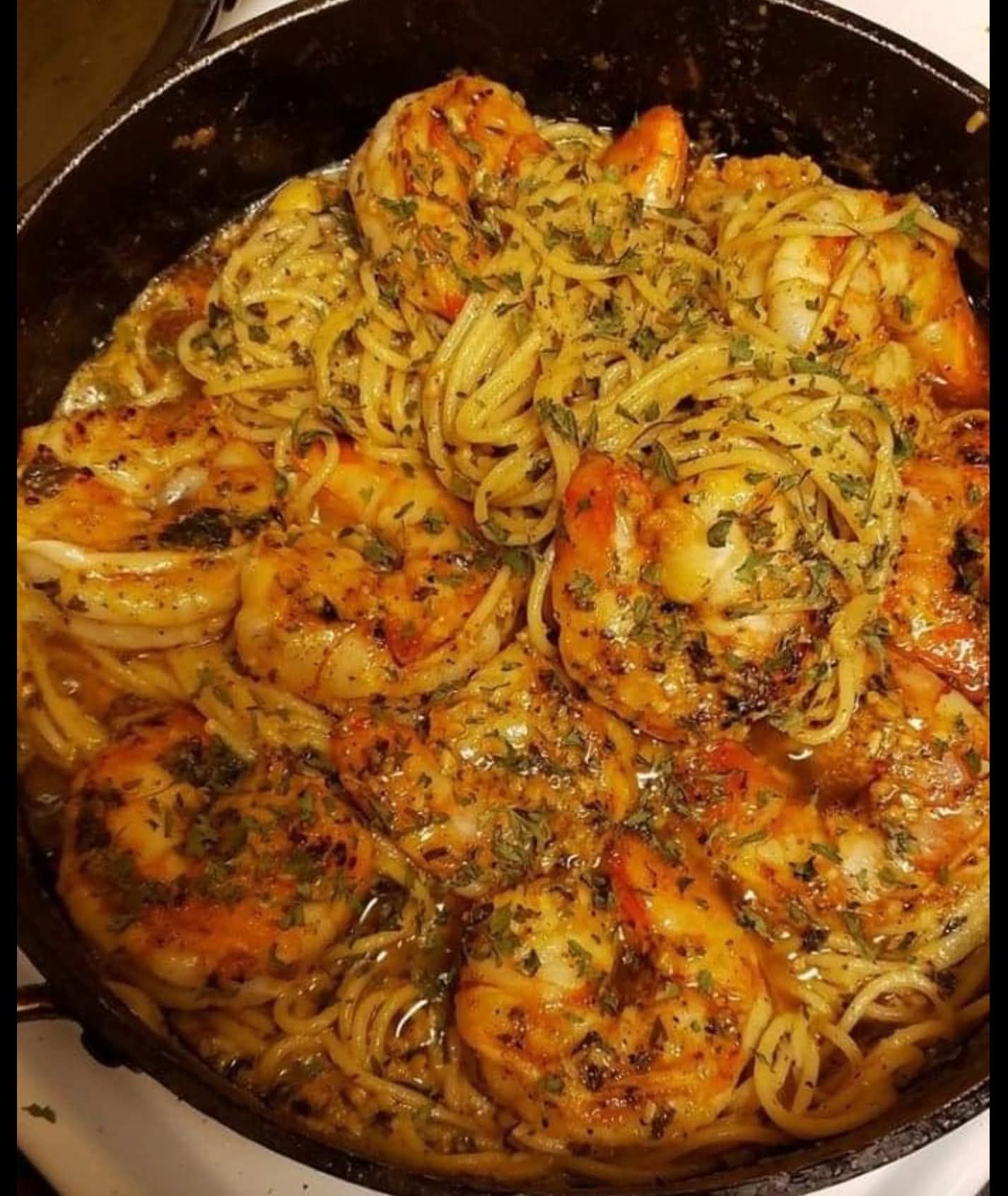 - Combine All Ingredients: Add the cooked and drained spaghetti to the skillet with the shrimp. Add your desired seasonings: Italian seasoning, fresh ground pepper, red pepper flakes, and salt. Pour in about 1/4 cup of the reserved pasta water.