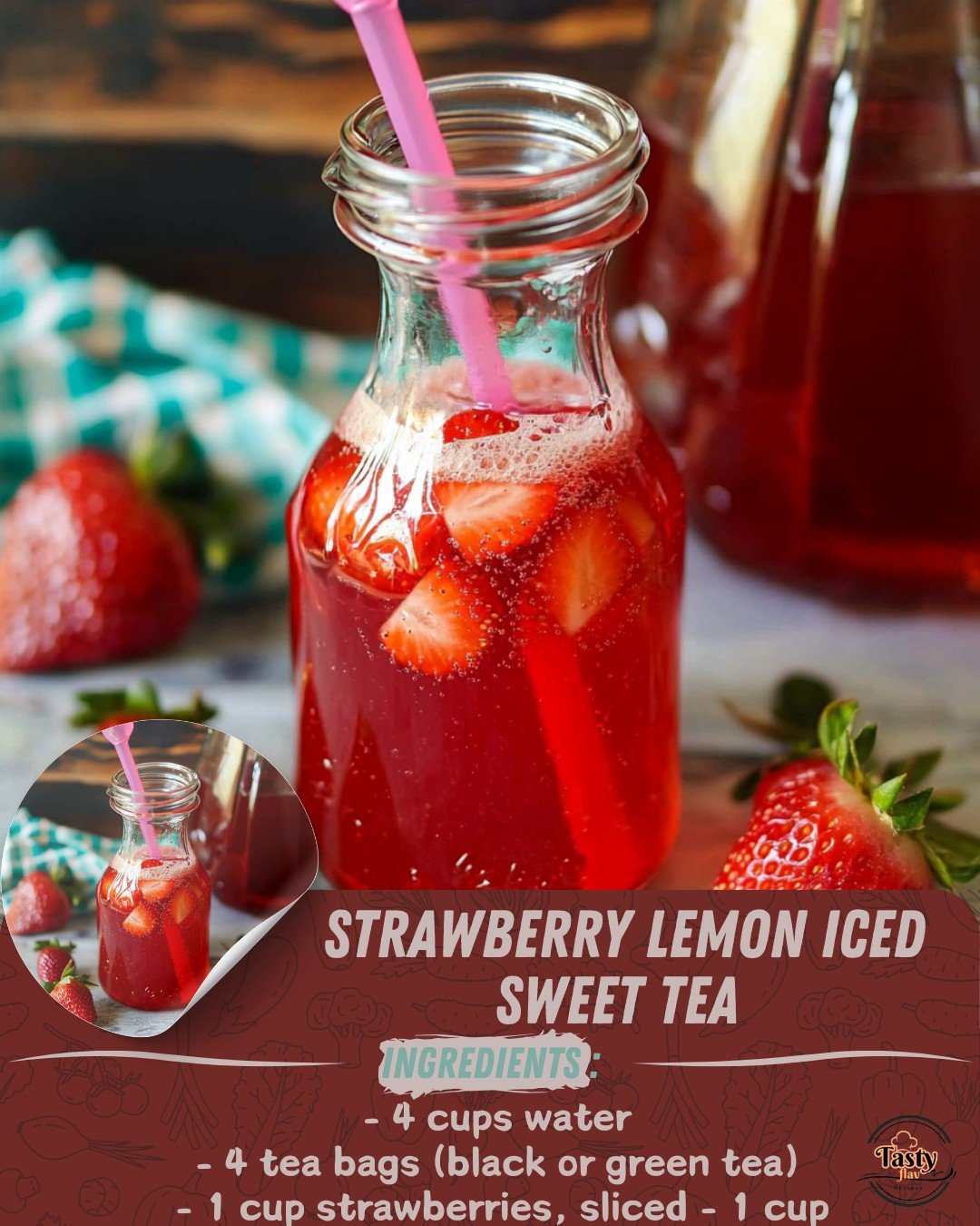 - In a pitcher, combine the chilled tea, lemon juice, and sliced strawberries.