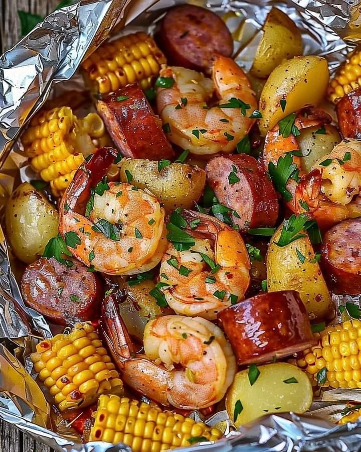 Shrimp, Corn, Potatoes, and Smoked Sausage Foil Packs: A Flavorful Feast in a Pouch