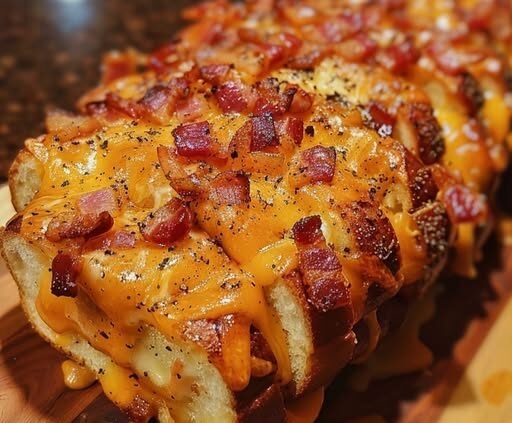 • 1 loaf of sourdough bread (round or oblong): Sourdough is perfect here because it’s sturdy and has a tangy flavor that complements the smoky cheddar and bacon.