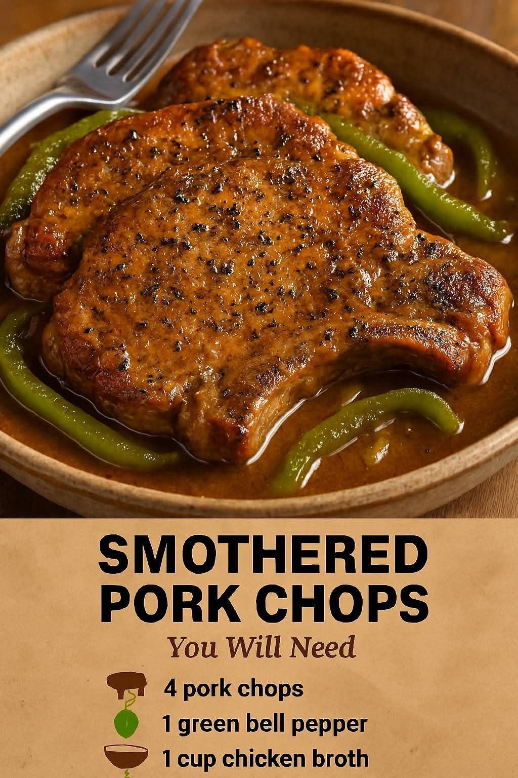 What I love most about smothered chops is how humble the ingredients are. There is nothing complicated here, but once the pork chops are browned and simmered with the vegetables and broth, the flavor becomes rich and comforting in the best way.