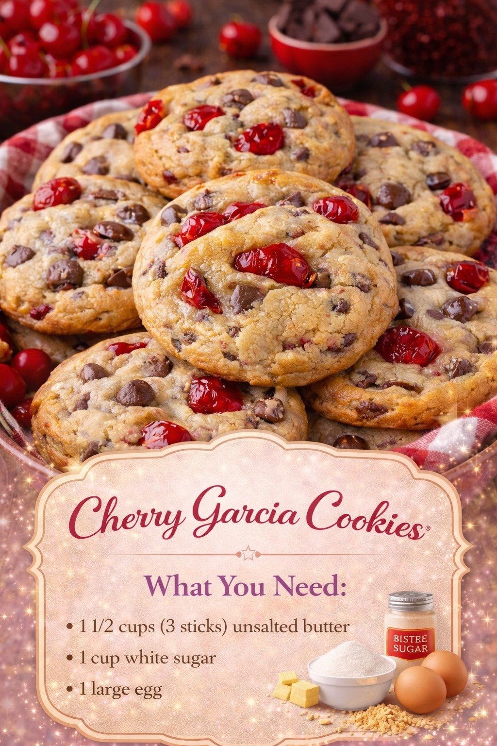 Cherry Garcia Cookies are sweet, buttery, colorful, and packed with chocolate-cherry flavor that feels both playful and classic. They’re easy enough for everyday baking, but unique enough to stand out anywhere you serve them. That makes them one of those recipes you’ll want to save for holidays, parties, and every time you need a cookie that gets people talking.