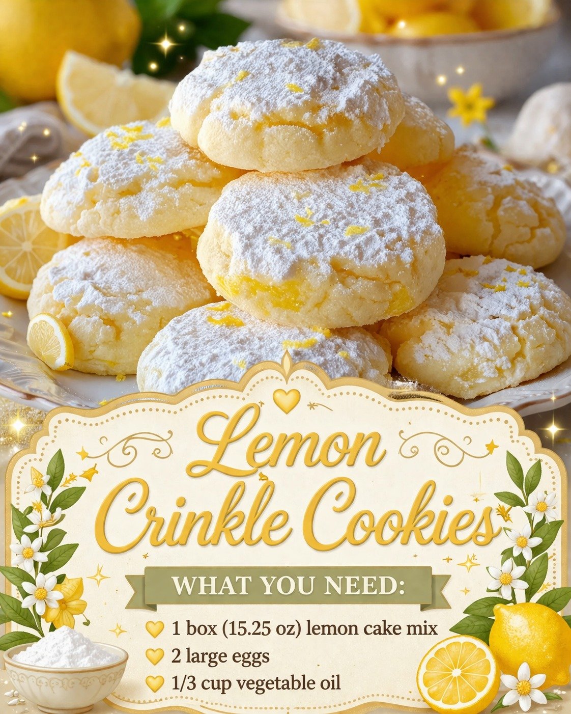 Lemon Crinkle Cookies – Bright, Chewy, and Perfectly Crackled