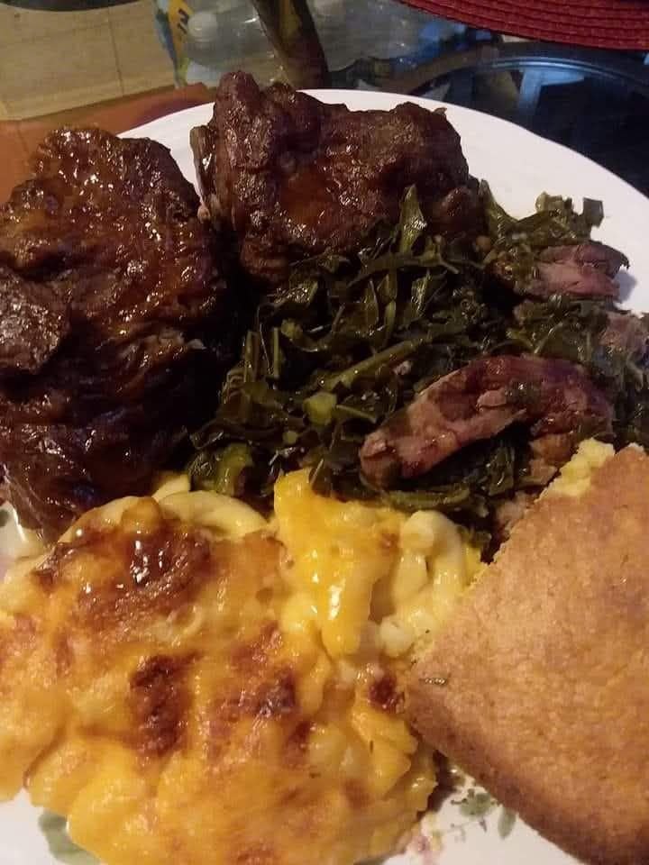 BBQ Neckbones pair beautifully with classic comfort-food sides like rice, mashed potatoes, baked beans, mac and cheese, collard greens, cornbread, or cabbage. The rich sauce and tender pork also go especially well with simple sides that soak up all the flavorful juices.