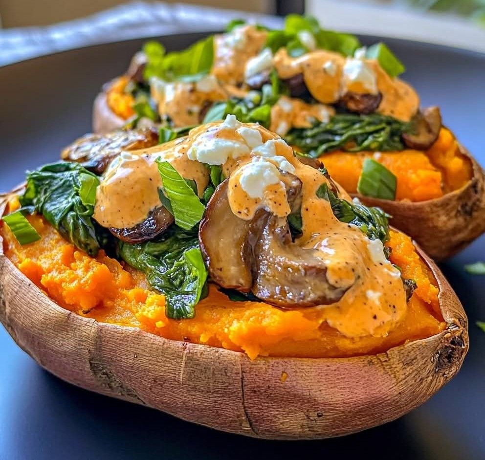 These Stuffed Sweet Potatoes with Spinach, Mushroom, and Feta, paired with Spicy Chipotle Yogurt Sauce, are a vibrant and incredibly satisfying meal that proves healthy eating can be absolutely delicious and full of exciting flavors. It’s perfect for a wholesome dinner that feels gourmet but is surprisingly easy to achieve.