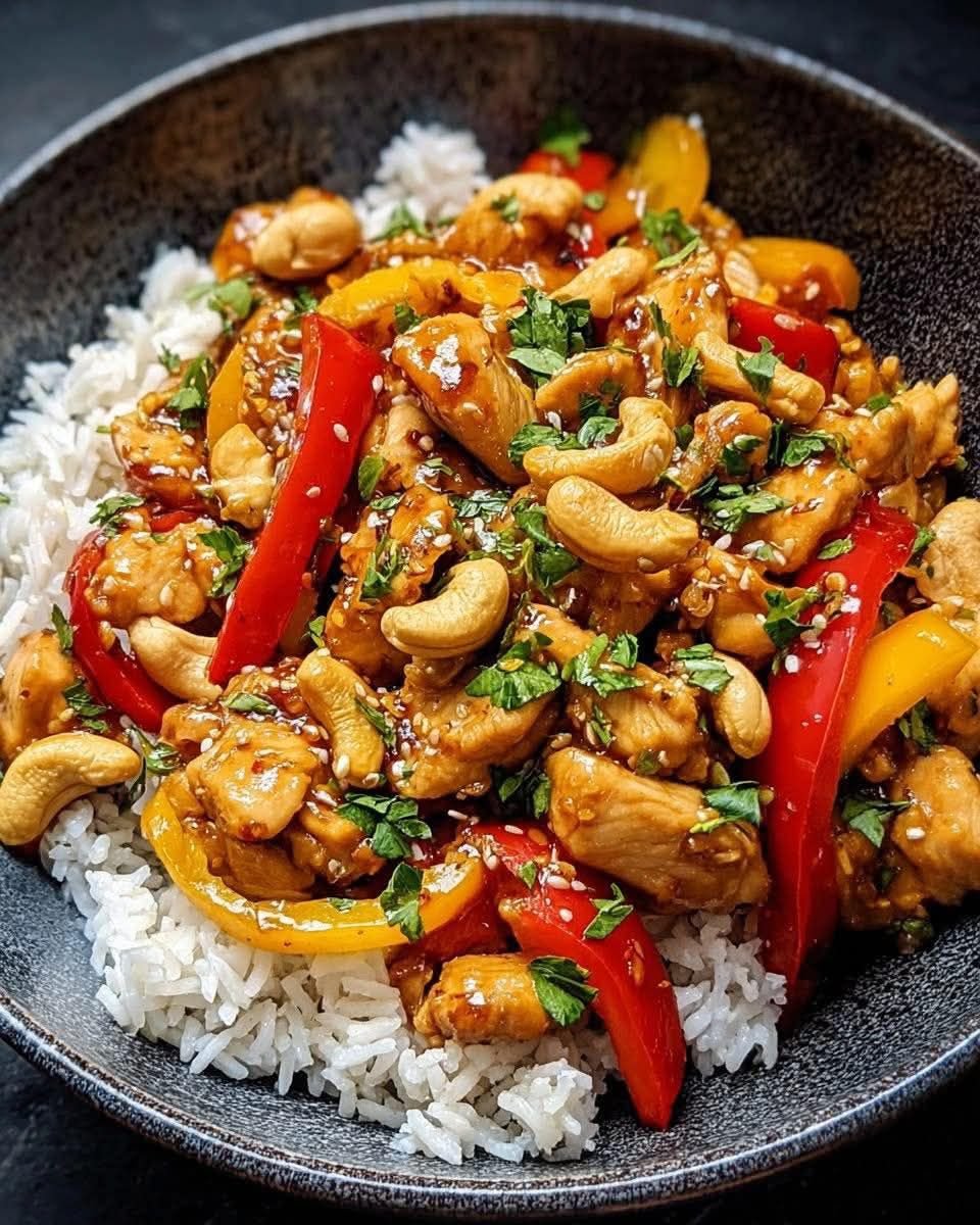 When you’re craving a meal that is both fast and full of flavor, a stir-fry is always the answer. This recipe for Spicy Cashew Chicken Stir-Fry is the perfect example. It brings together tender chicken, crisp-tender bell peppers, and a rich, sweet, and spicy sauce that clings to every piece. Topped with a satisfying crunch from roasted cashews and served over fluffy jasmine rice, it’s a complete, delicious, and incredibly satisfying meal that you can have on the table in just about 20minutes. This is a perfect solution for a busy weeknight and a great way to enjoy a homemade, delicious meal without a lot of fuss.