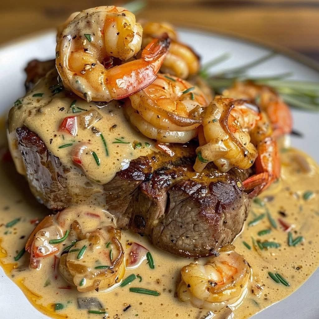4. Plate & Serve: Slice the rested steak against the grain into thick slices (or serve whole, if preferred). Spoon the creamy Cajun shrimp sauce generously over the steak on serving plates. Garnish with fresh chopped parsley or green onion for a touch of color and freshness. A final squeeze of fresh lemon juice over the top is optional but highly recommended to brighten the flavors. Serve immediately with complementary sides such as creamy mashed potatoes, fluffy rice (perhaps garlic butter rice), or roasted vegetables.