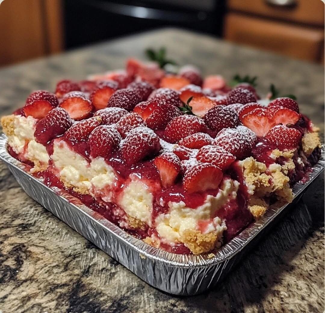 Strawberry Cheesecake Dump Cake 🍓 – The Easiest Crowd-Pleasing Dessert Ever