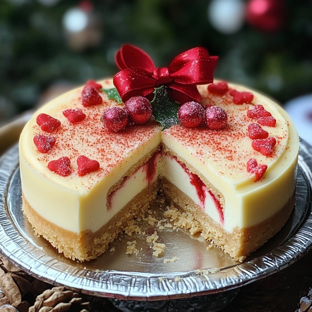 A Creamy Vanilla Cheesecake with Festive Sugar Cookie Swirls