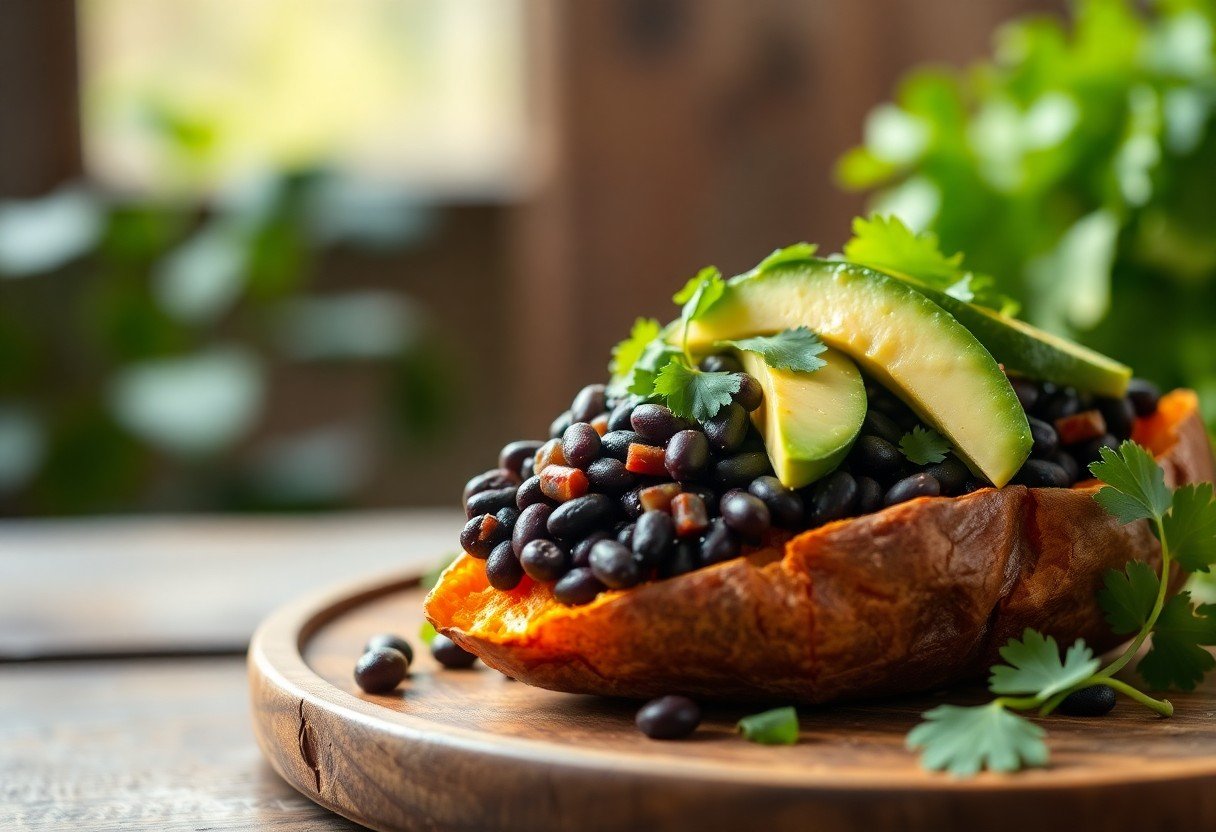 Loaded Sweet Potatoes with Black Beans and Avocado