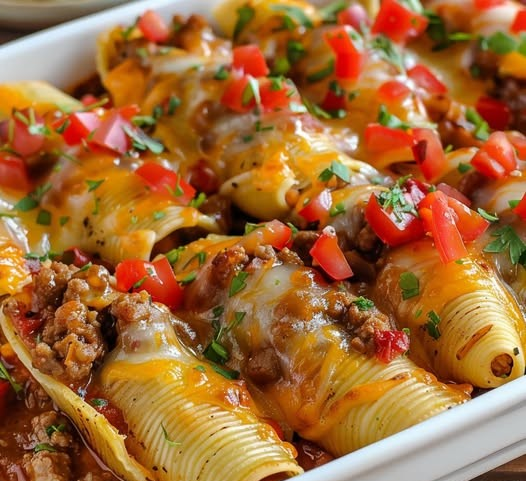 Jumbo pasta shells are filled with savory taco-seasoned beef, blanketed in sauce, and covered in melty cheese. It’s a mashup that’s surprisingly easy, totally delicious, and guaranteed to impress whether you’re feeding your family or hosting a casual dinner with friends.