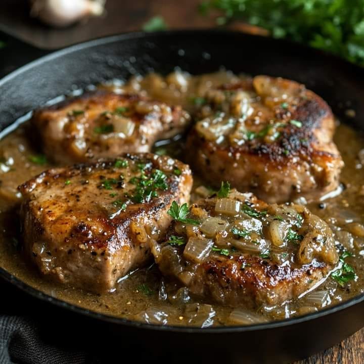 Enjoy your incredibly tender and flavorful smothered pork chops!