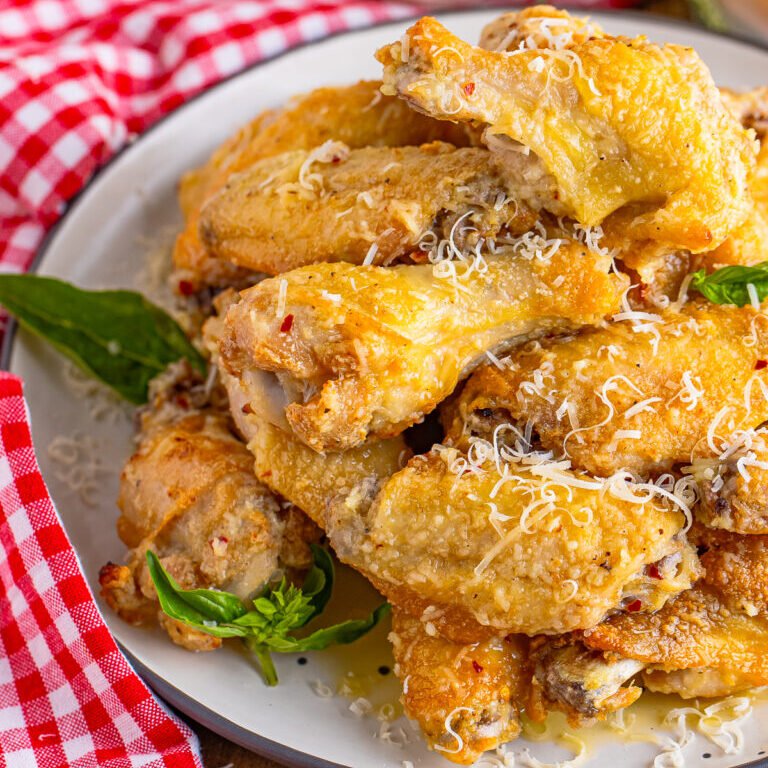 Garlic parmesan wings are best enjoyed immediately. If you do have leftovers, you can store them in an airtight container in the refrigerator for up to 2 days. To reheat, the best method is to pop them in an air fryer or back in the oven at 350°F (175°C) for 10-15 minutes to crisp them back up. Microwaving is not recommended as it will make them soggy.