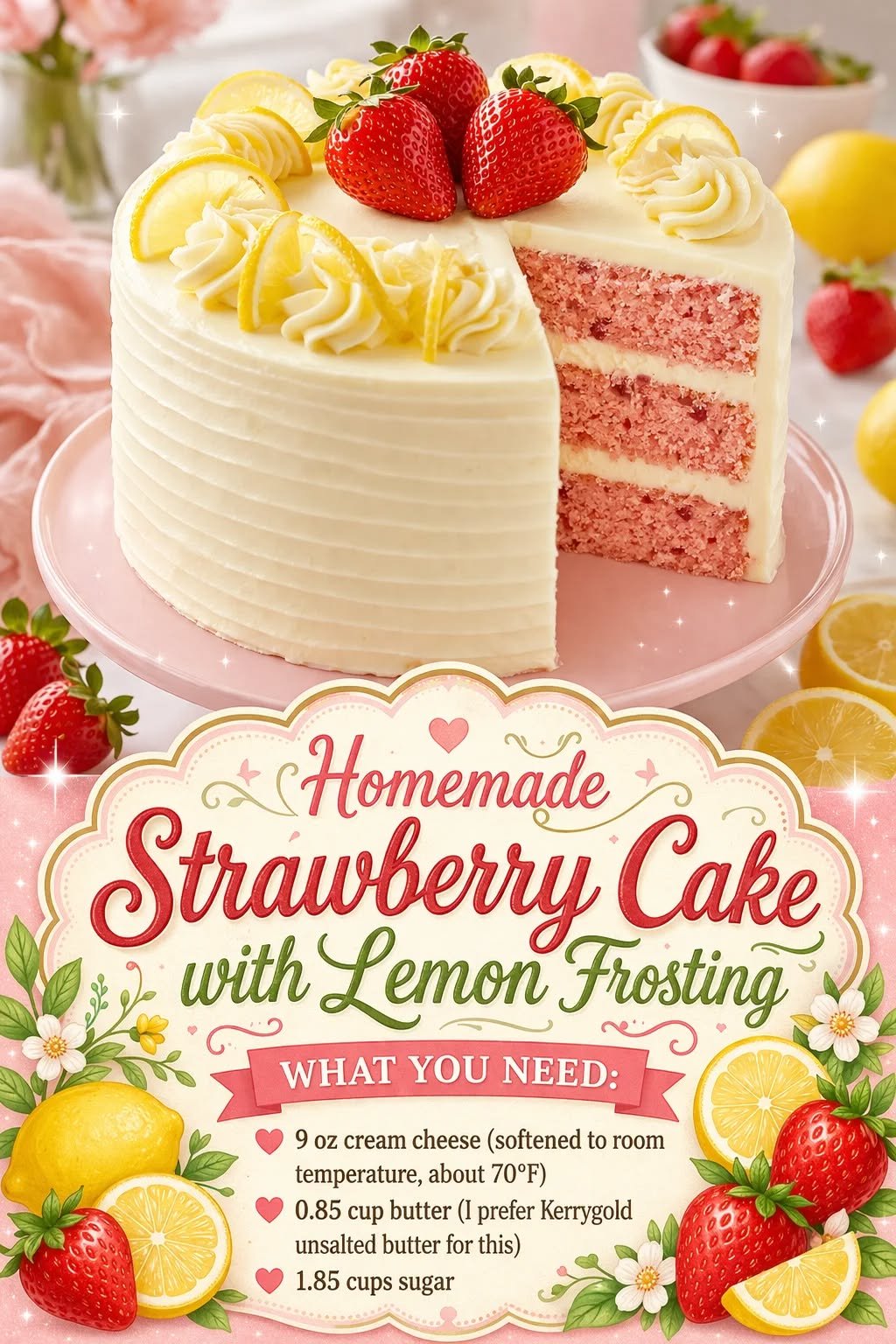The Best Homemade Strawberry Cake with Lemon Frosting Recipe