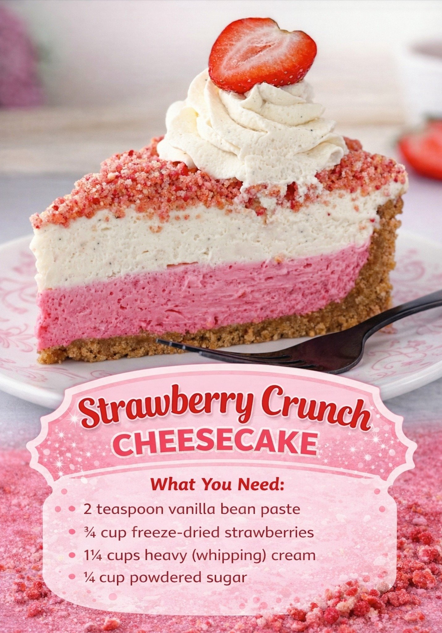 No-Bake Strawberry Crunch Cheesecake (Ultra Creamy & Easy to Make!)