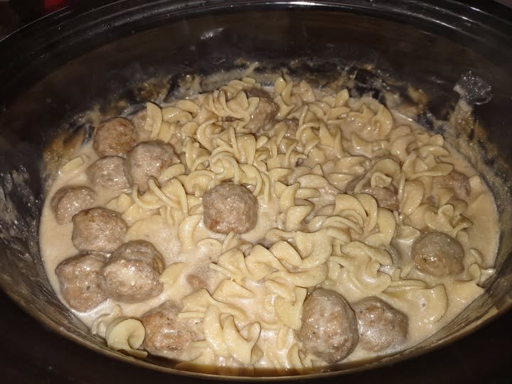 Creamy, dreamy sauce: The combination of cream of mushroom soup, sour cream, and beef broth creates a rich, velvety sauce that coats every meatball and noodle perfectly.