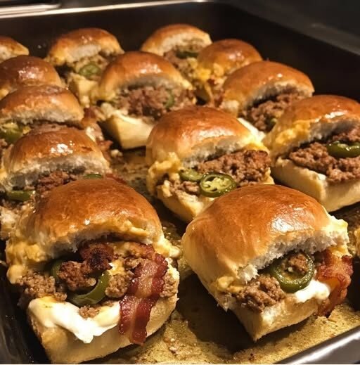 These are not your grandma’s meatloaf. Instead of a loaf, we go mini—adding cheddar, jalapeños, and cream cheese right into the mix. Then we wrap each patty in bacon and bake until crisp. It’s like a flavor explosion in slider form. You get smokiness, spice, creaminess, and pure comfort—all in a bite-sized bun. They’re easy to make, wildly impressive, and guaranteed to disappear fast.
