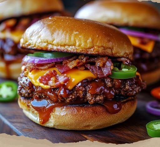 If you’re craving a burger with some serious swagger, look no further than these Loaded Cowboy BBQ Bacon Burgers. We’re talking about juicy ground beef mixed with smoky barbecue sauce, melty cheddar cheese, crispy bacon, red onions, and jalapeños—all stacked high on a toasted bun. These burgers bring the full rodeo of flavor, balancing sweet, smoky, spicy, and savory in every bite.