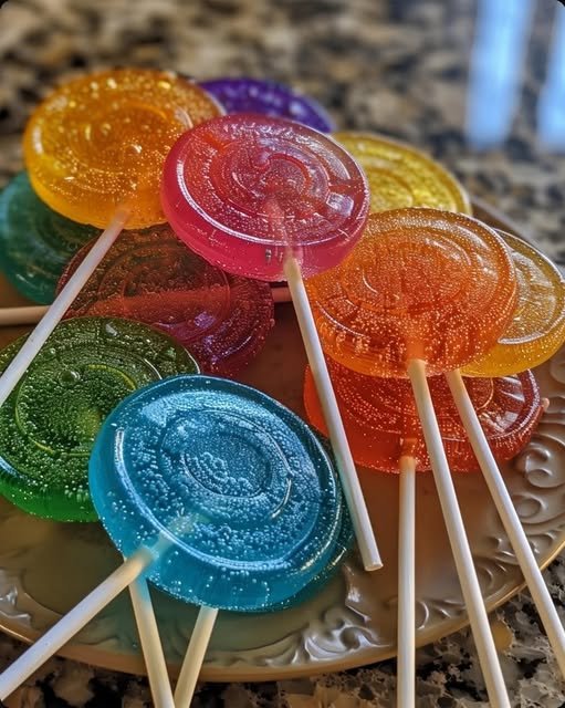 I let the lollipops cool completely at room temperature, usually about 10–15 minutes. As they set, the fizz develops and the surface turns shiny and smooth.