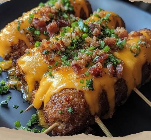 This recipe is a full-on celebration of comfort food. Every bite delivers smoky, cheesy burger flavor wrapped in a crisp cornbread shell. They’re ridiculously fun to make and even more fun to eat. Whether you’re throwing a party, planning a game-day spread, or just want to try something wild, this one’s guaranteed to wow.