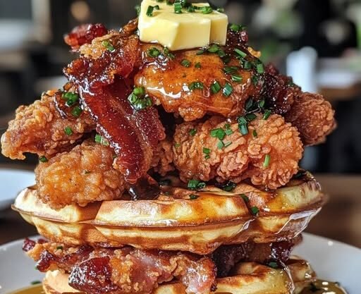 I’m always looking for recipes that hit multiple flavor notes, and this one checks every box. The crispy bacon, crunchy fried chicken, fluffy waffles, and sticky-spicy hot honey come together in a way that’s downright addictive. It’s hearty, satisfying, and ready in under 30 minutes if you prep smart.
