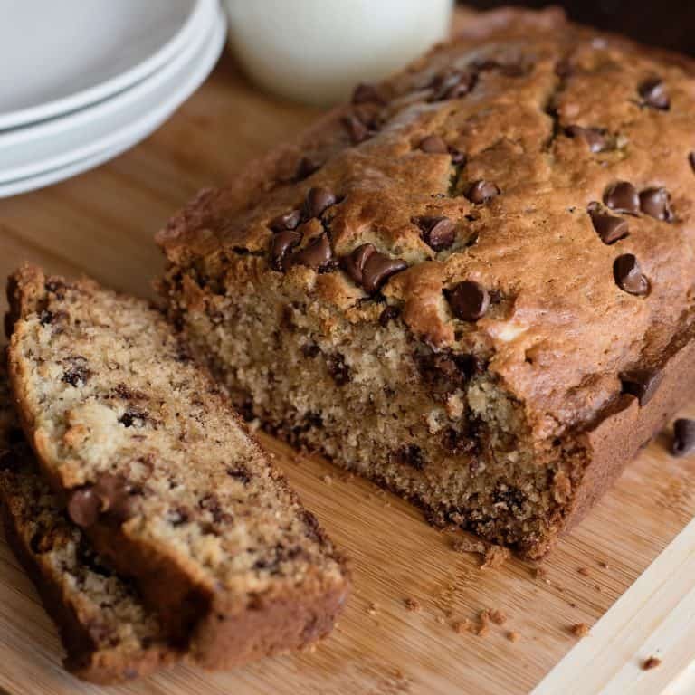 A: I love semi-sweet for balance, but milk or dark chocolate work too. Mini chips melt more evenly throughout the loaf.
