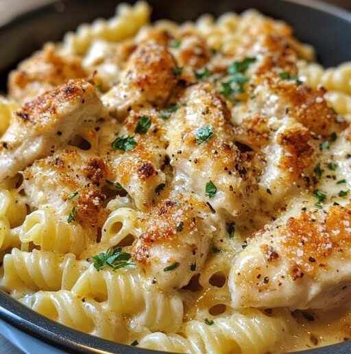 This Creamy Garlic Parmesan Chicken with Cheesy Twisted Pasta is a celebration of comfort food done right—rich, garlicky cream sauce, perfectly cooked chicken, and noodles that hold onto every drop. It’s weeknight-friendly, guest-worthy, and guaranteed to end your day on a high note.