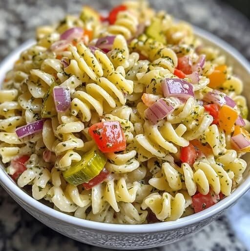 With its bold pickle punch and creamy dressing, it stands out among more traditional pasta salads—and trust me, everyone will be asking for the recipe.