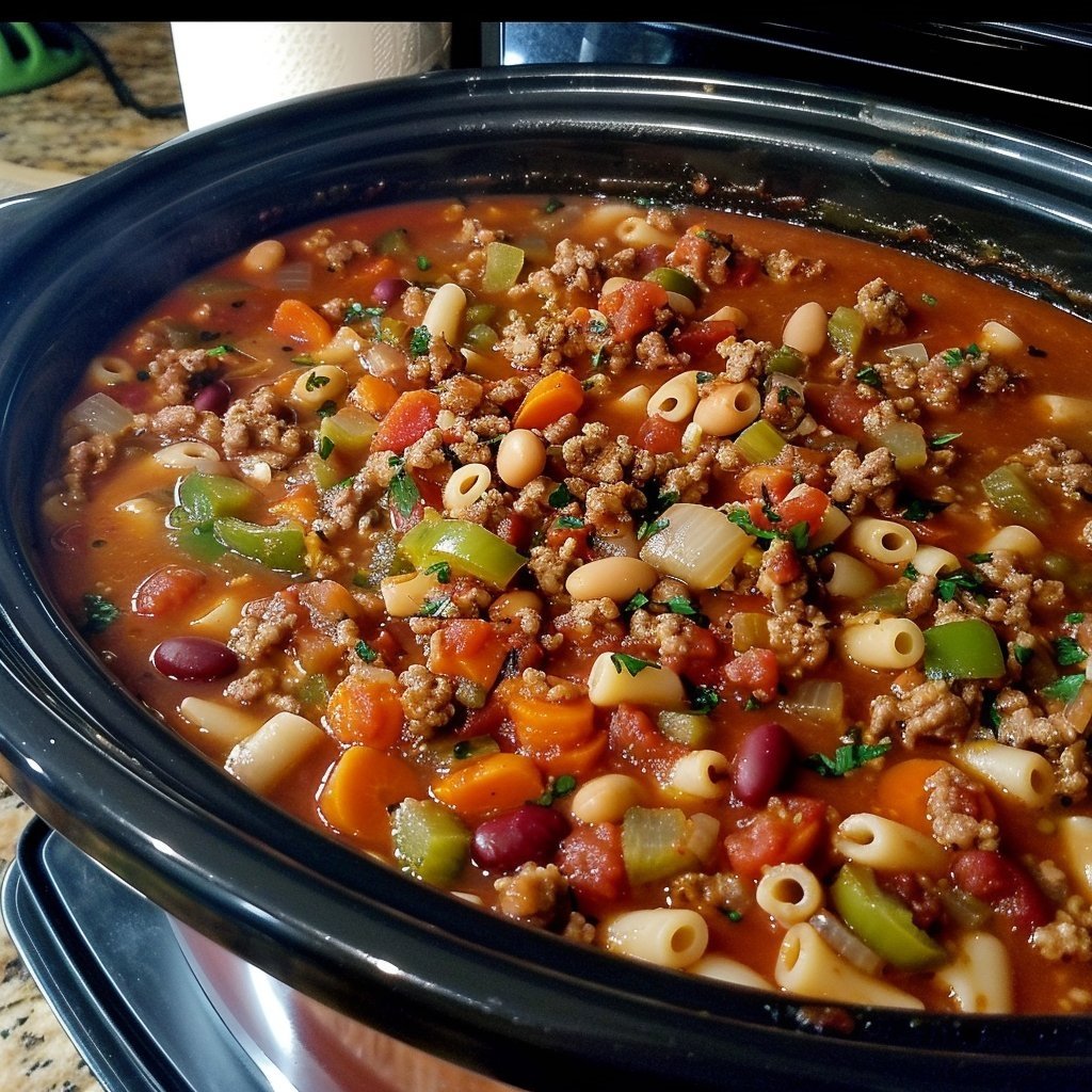 Pasta Fagioli (pronounced pasta fazool) is one of those rustic Italian dishes that’s as flexible as it is flavorful. This version takes the classic and amps it up with ground beef for added heartiness. It’s a full meal in one bowl, made easy with pantry staples and your slow cooker doing the heavy lifting.