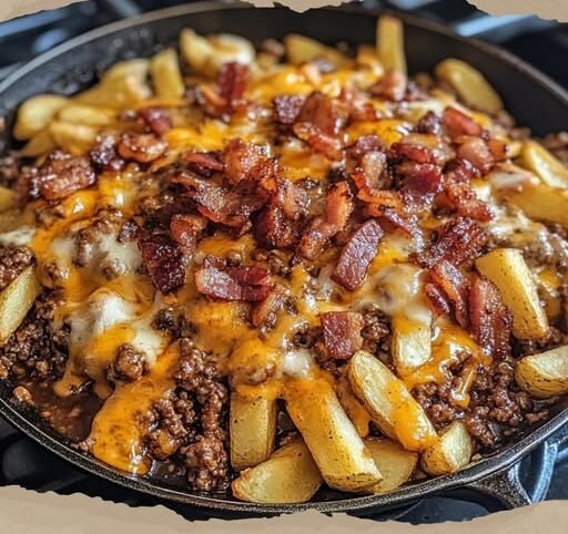 Smoky Maple Bacon Cheeseburger Skillet Fries are the definition of over-the-top in the best possible way. Loaded with sweet maple-glazed beef, crispy bacon, gooey cheddar, and golden fries, this dish brings all the burger shop vibes straight to your oven. Perfect for sharing (or not), and even better with a cold drink and good company.