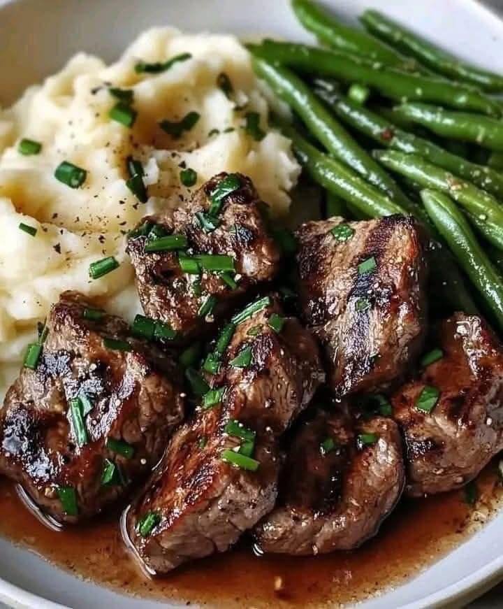 This Garlic Butter Steak Bites with Mashed Potatoes and Green Beans recipe is a tried-and-true comfort food favorite. With tender steak in rich garlic butter, creamy mash, and fresh green beans on the side, it’s a full plate of feel-good flavor that never fails.