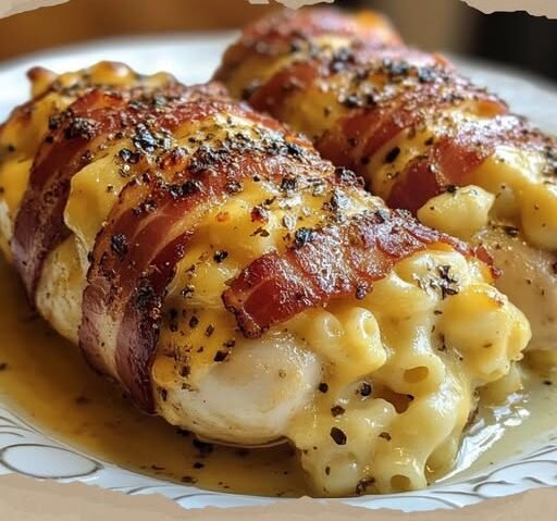 This is not your average chicken dinner. These Bacon-Wrapped Mac ‘n’ Cheese Stuffed Chicken Breasts are everything you love about comfort food rolled into one crispy, cheesy, meaty masterpiece. Perfectly seasoned chicken breasts are stuffed with creamy homemade macaroni and cheese, then wrapped in savory bacon and baked until golden and bubbling. It’s a bold and unforgettable dish for when you want to impress—or just seriously treat yourself.