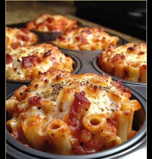 Turkey Bacon Baked Ziti Muffins: Individual Cheesy Pasta Bakes