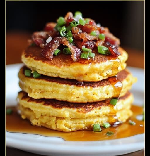 When sweet meets savory and fluffy meets crispy, you get the ultimate brunch centerpiece: the Turkey Bacon Cornbread Pancake Tower. These thick, golden pancakes are made with a cornbread base—giving them a rich, Southern-inspired texture—and layered high with crispy turkey bacon and optional maple butter. Whether you’re building them for a cozy weekend breakfast or a show-stopping brunch plate, this tower is stacked with flavor, fun, and comfort.