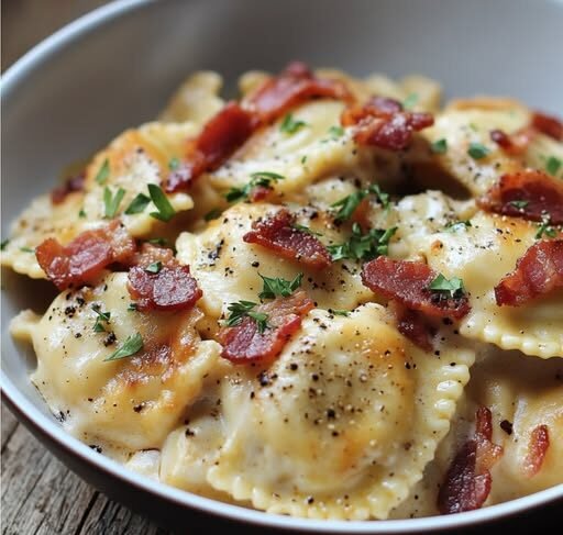 This recipe is truly a marvel of modern comfort food. I love how it marries two distinct culinary traditions into something incredibly satisfying. The pillowy ravioli provides a wonderfully tender base, perfectly soaking up the rich, savory gravy. The addition of melty cheese curds (or mozzarella) brings that classic poutine gooeyness, and the crispy turkey bacon adds a fantastic smoky, salty crunch that ties all the flavors together. It’s a dish that feels both familiar and excitingly new, making it a guaranteed hit for anyone who dares to try it. It’s a perfect dish for a cozy night in or a unique offering at a potluck!