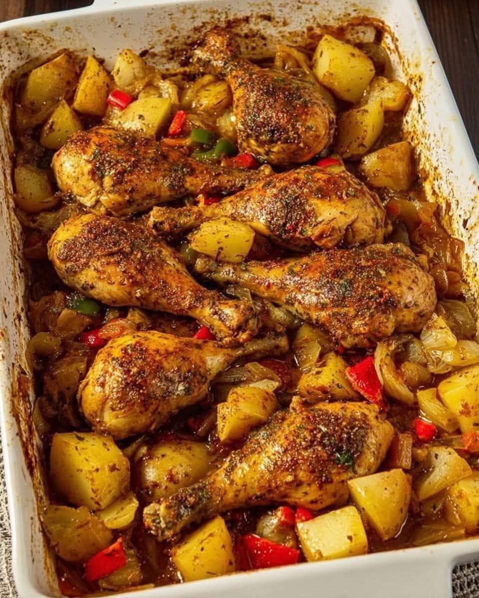 There’s nothing more satisfying than a meal that feels both wholesome and decadent, and this recipe for Ultimate Baked Chicken with Potatoes and Peppers is the perfect example. It’s a simple, one-pan wonder that brings together juicy chicken drumsticks, beautifully roasted potatoes with crispy edges, and sweet, tender bell peppers and onions. The entire dish is seasoned with a rustic blend of herbs and spices, creating a deeply flavorful meal with minimal cleanup. This is the kind of hearty, comforting food that feels right at home on a cozy evening and is guaranteed to be a hit with the entire family.