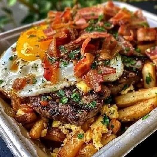 Craving a big, bold breakfast that satisfies every craving? This Steak & Eggs with Fries and Bacon plate has it all: juicy pan-seared steak, golden crispy fries, buttery eggs, and crispy strips of bacon. Whether you’re fueling up for the day or serving it as a comfort dinner, this dish checks every box.