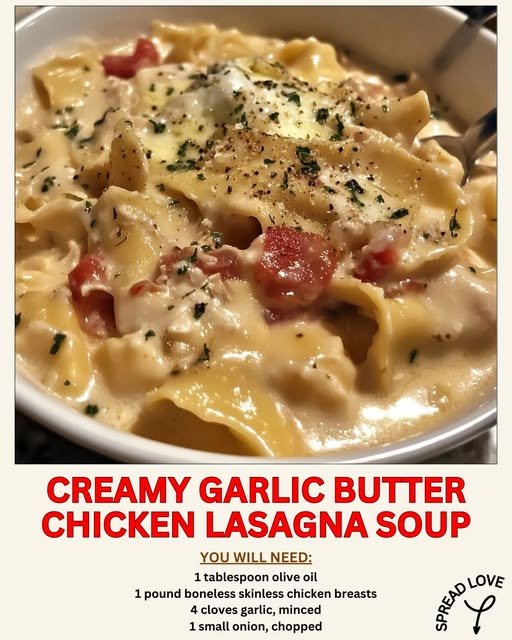 There you have it—a delicious and comforting Creamy Garlic Butter Chicken Lasagna Soup that’s perfect for any occasion! This dish is not only easy to make but also packed with flavor, making it a great choice for family dinners or cozy nights in. How did your soup turn out? We’d love to hear your thoughts! Don’t forget to follow us for more delightful recipes and cooking inspiration!