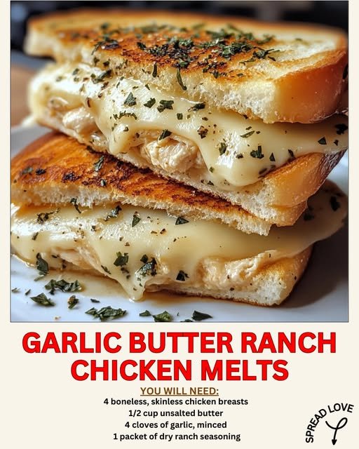 Tags: chicken melts, garlic butter, ranch, comfort food, easy dinner